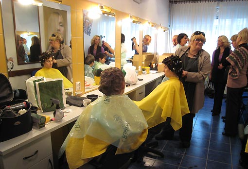 Priprema djevojaka - modela u frizerskom salonu Obrtničke i tehničke škole Ogulin