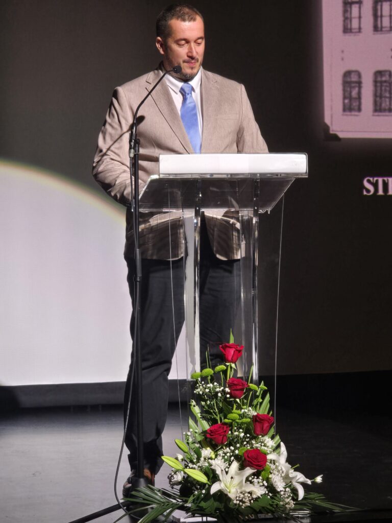 Nakon pozdravnog govora i zahvale ravnatelja škole Davida Fabijana, u ime Grada Ogulina prisutnima se obratio gradonačelnik Dalibor Domitrović, koji je uputio čestitku svim sadašnjim i bivšim djelatnicima, kao i učenicima škole, naglasivši važnu ulogu koju ova ustanova ima u obrazovanju.